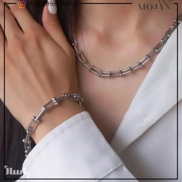 جنس محصول رنگ ثابت سبک محصول اسپرت رنگبندی سفید ست شامل دستبند گردنبند قفل محصول طوطی