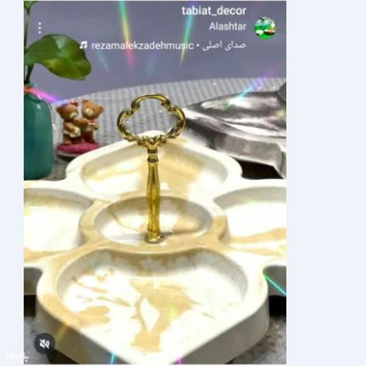 اردو خوری شیک و زیبا مدل گل چهارپر ساخته شده با متریال سنگ مصنوعی و رزین نانو با هولدر طلایی