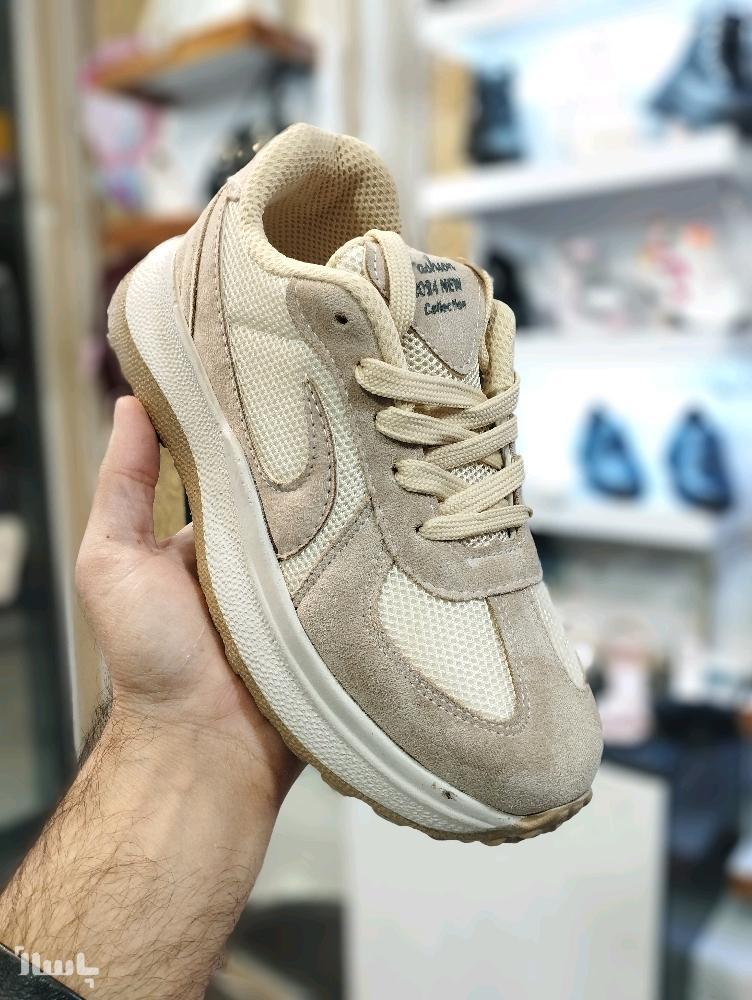 کفش اسپرت زنانه و دخترانه نایک با زیره پیو در دو رنگ کرمی و سفید و سایز بندی 37 تا 40