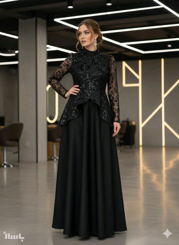 پیراهن مهمانی زنانه کرپ jm مدل ماکسی پرنسس