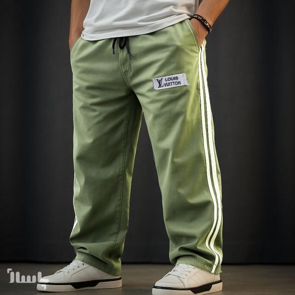 شلوار اسلش بگ نواردار سه کنفی جنس بنگال رنگ سبز صدری