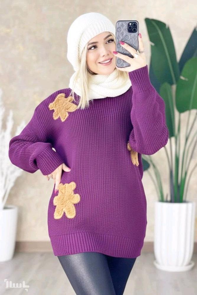 فری از 36 تا 50 - قد 70 - قد استین از یقه 79 - خرس روی کار دوخت شده