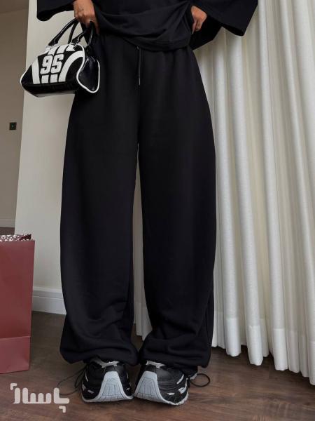 شلوار بگ دورس کرک دار کمرکش مشکی و سرمه ای
