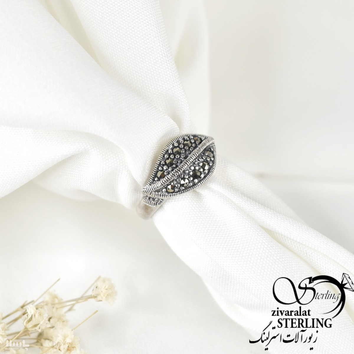 انگشتر سیاه قلم نقره زنانه طرح برگ کد 4225
