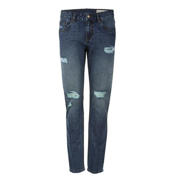 جزئیات زاپدار: دارای پارگیهای (Distressed) افقی و ریشریش شده روی قسمت ران و زانو که ظاهر مدرن و کژوالی به آن بخشیده است.