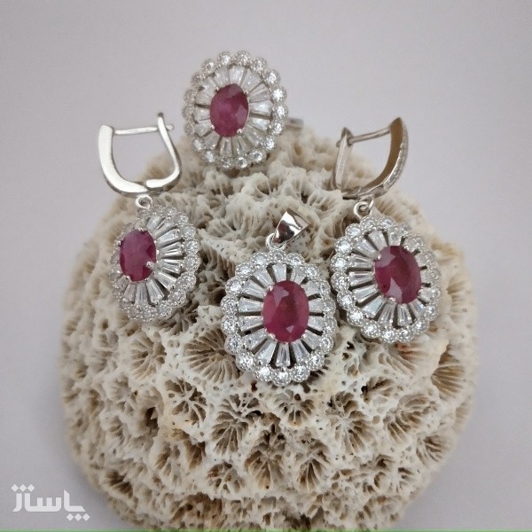 نیم ست نقره با سنگ یاقوت آفریقایی اصل.