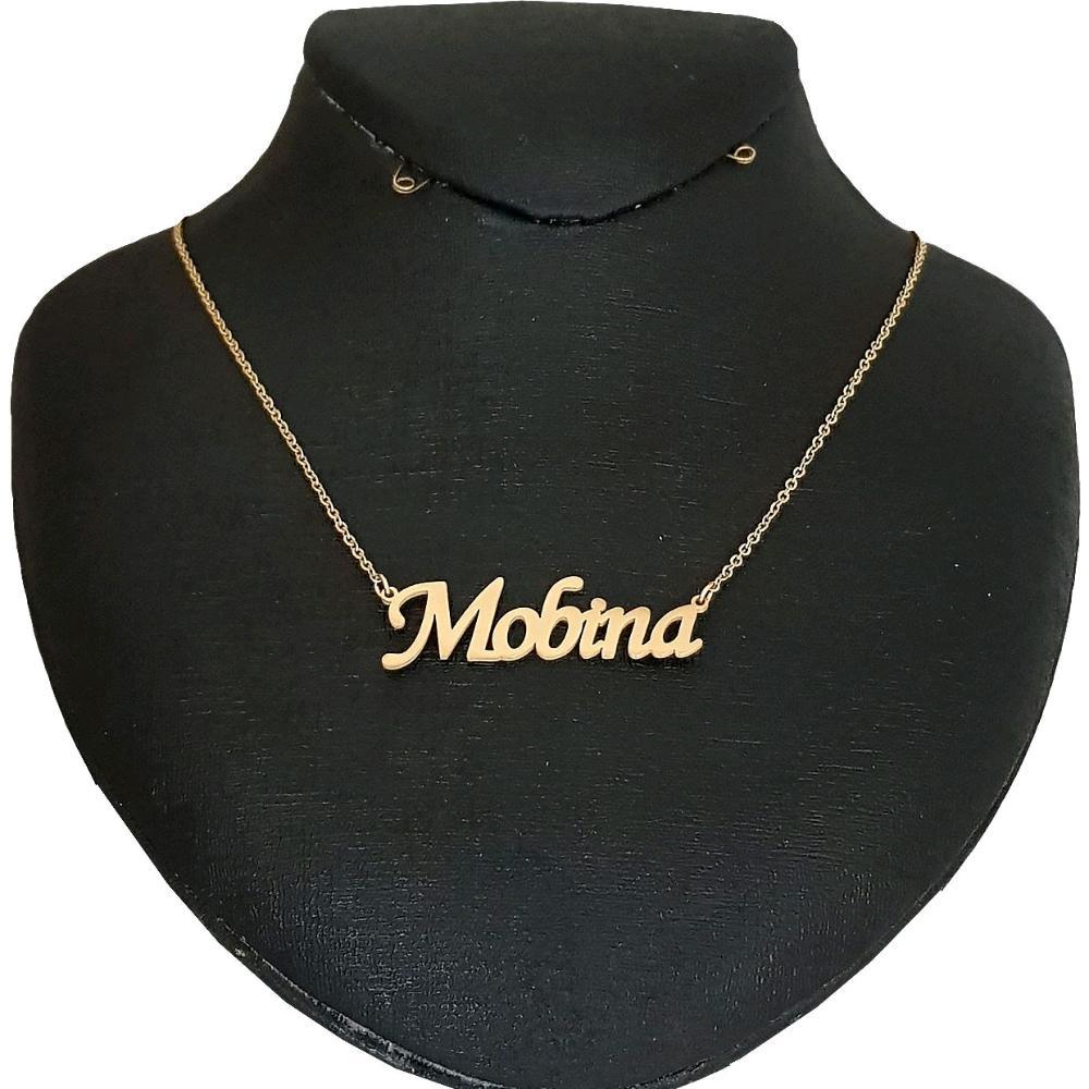 گردنبند اسم مبینا با فونت خوانا و زیبای لاتین می باشد . جنس این گردنبند اسم استیل طلایی رنگ ثابت و ضد حساسیت می باشد.