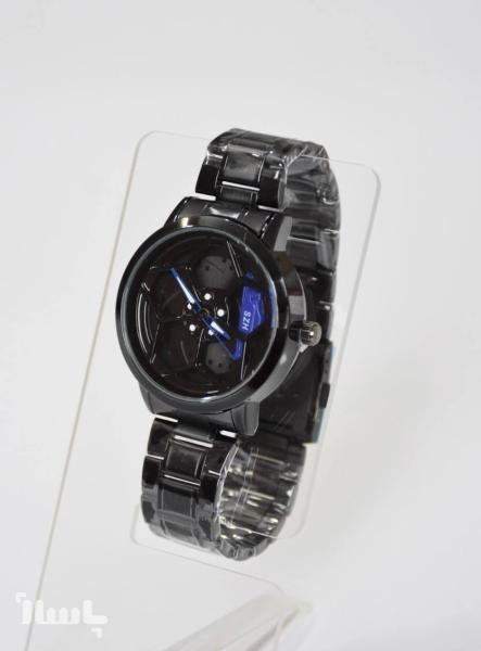 ساعت مچی کوارتز رینگی|صفحه چرخان| بند استیل رنگ مشکی|صفحه مشکی آبی