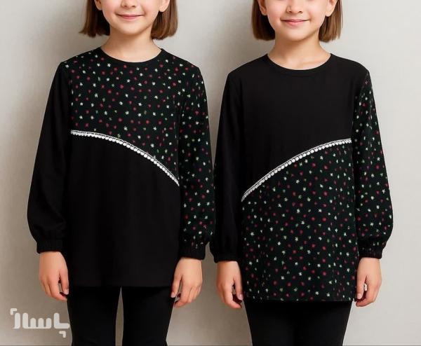 شومیز تونیک مشکی دخترانه نوجوان گل ریز