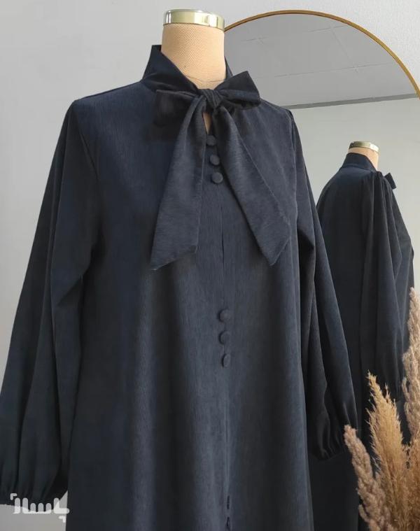 رویه زنانه مخمل مدل مانتو بلند پاپیونی مخمل کبریتی ریز شیک