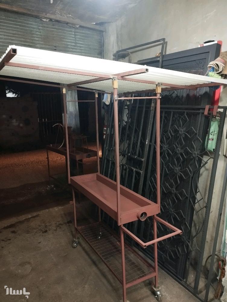 منقل کباب ذغالی پایه بلند مسقف چرخ دار