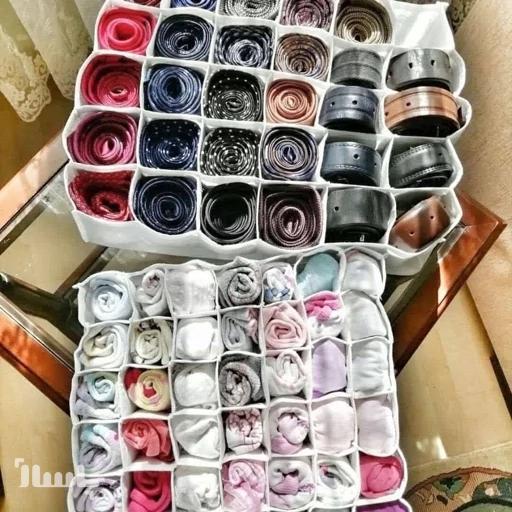 نظم دهنده ای دارای 30 خانه مساوی مناسب برای جوراب، شورت مردانه و زنانه، کروات، ساق دست، هدبند و توربان، دستکش، روسری قواره کوچک، سوتین معمولی، لباس نوزاد و هر چیز کوچکی توی کشو مناسبه