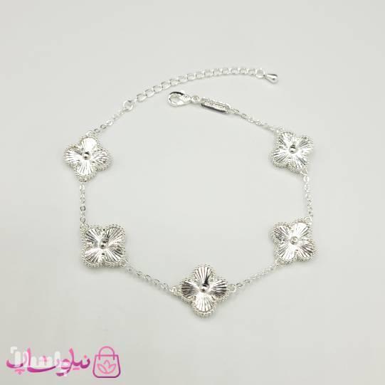 دستبند زنانه ونکلیف فول نقره ای رنگ آبکاری نقره کیفیت مستر کد 370