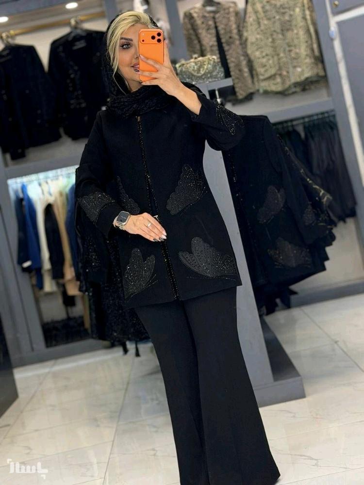 کرپ مرویجت با طرح برگ ساتن ترک و نگین مشکی