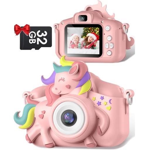 دوربین Gofunly X1 مخصوص کودکان: عکس تا 20MP، فیلم فولاچدی 1080P، صفحه 2.0 اینچ، باتری 1000mAh و کارت 32GB همراه. طراحی ایمن با پوشش سیلیکونی و قابلیتهای سرگرمکننده برای هدیه و آموزش کودکان.