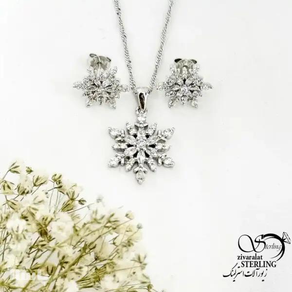نیمست طرح برفی نگین دار عیار 925 طرح طلا کد 20309
