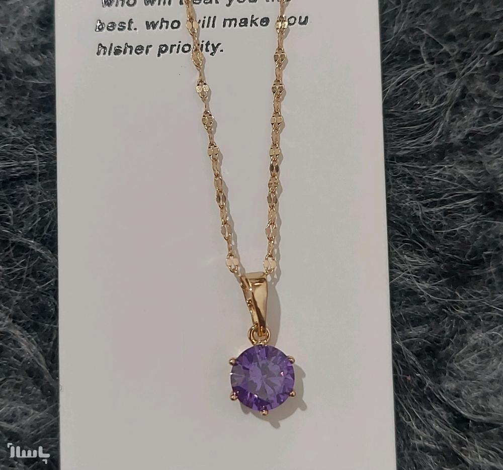 گردنبند تک نگین بنفش با زنجیر ژوبینگ رنگ ثابت ضمانتی