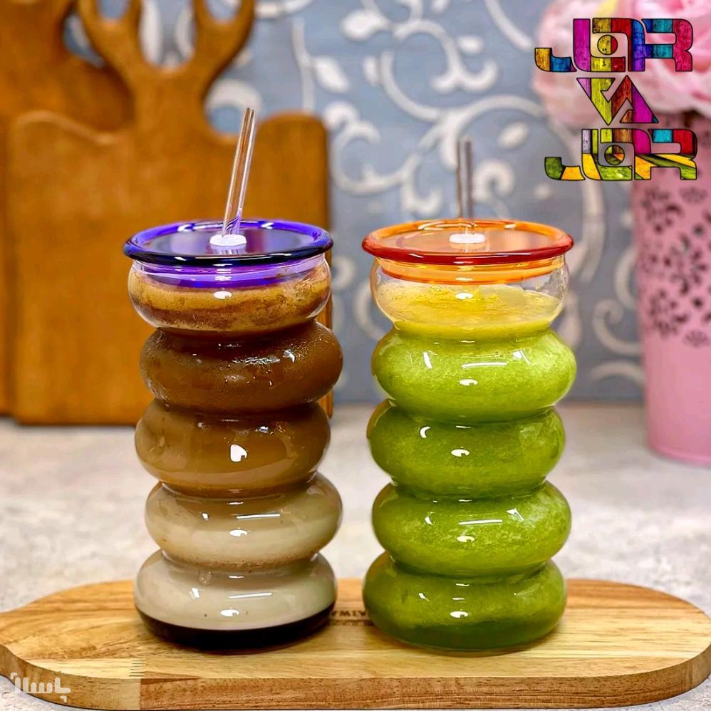 لیوان نی دار با درب پلاستیک فشرده شیشه ای و آب بندی درب