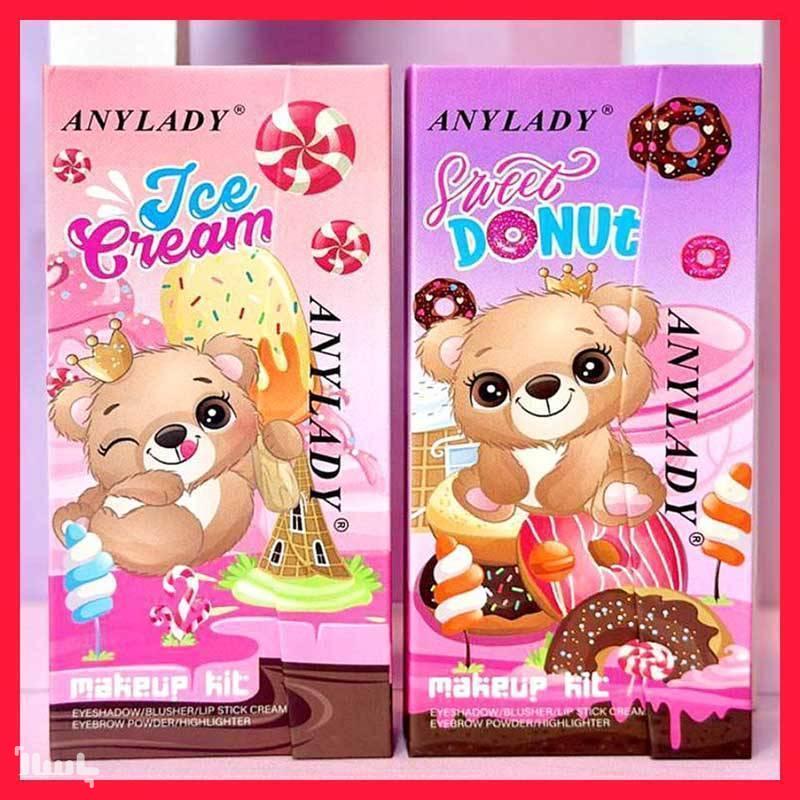 مجموعه کامل آرایشی متشکل از پنکک، رژگونه، هایلایتر، رژلب، سایه ابرو و سایه چشم