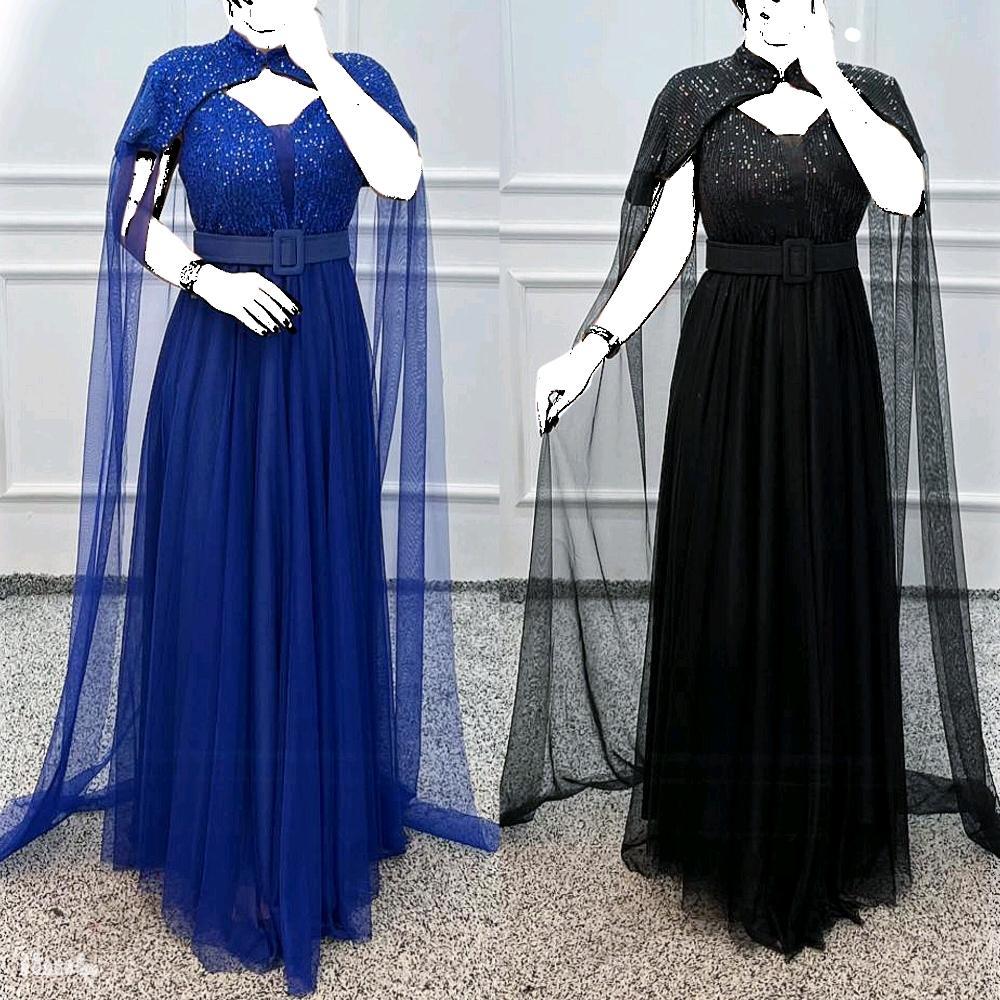 لباس مجلسی ماکسی تور پولک شنل دار سایز بزرگ آرو شا