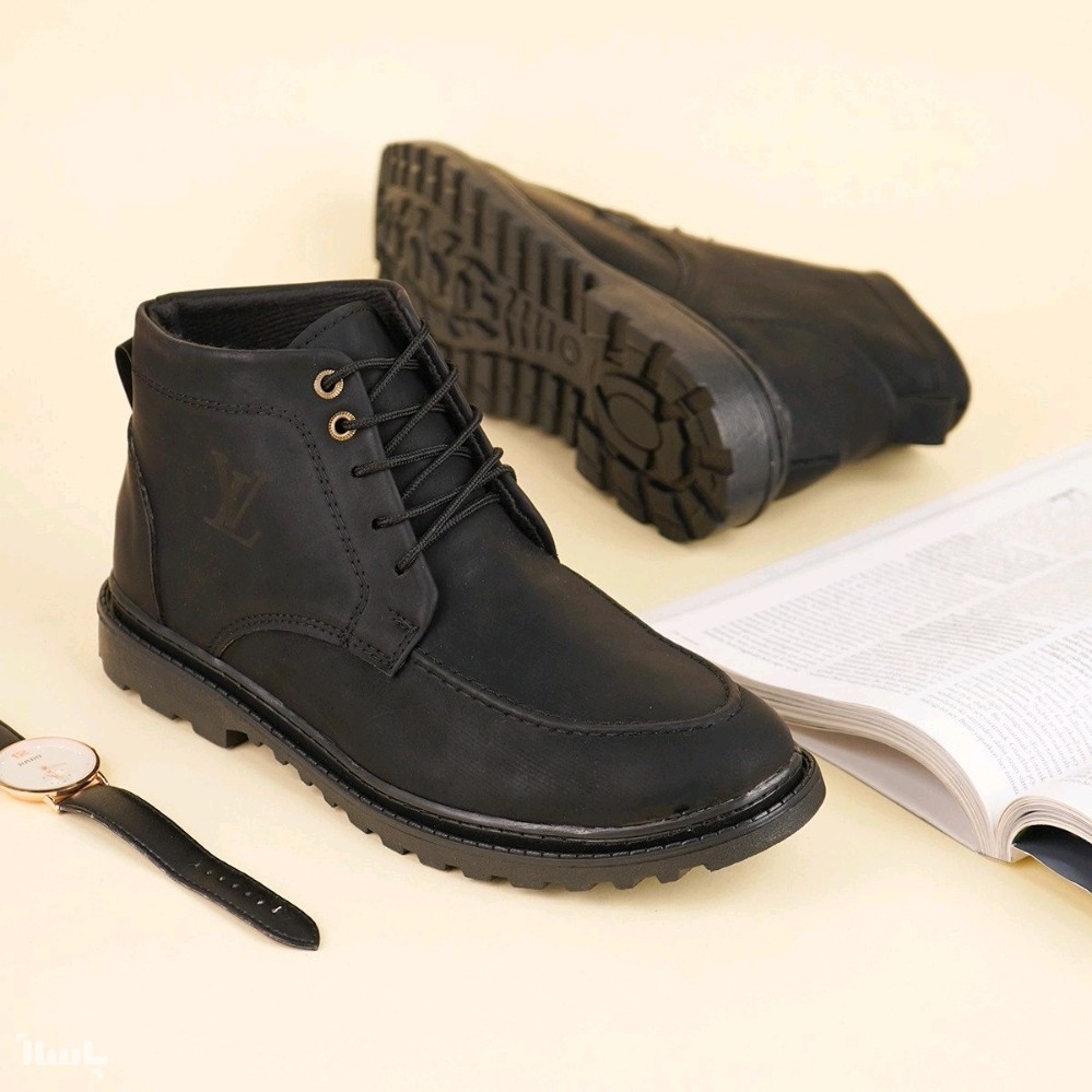 نیم بوت مردانه LV مشکی مات مدل Roni