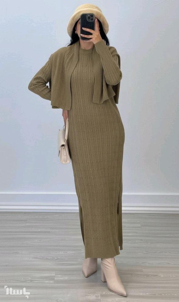 ست دو تکه بافت سارافون یقه اسکی و کت رویه