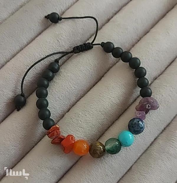 دستبند سنگ هفت چاکرا و انیکس مشکی