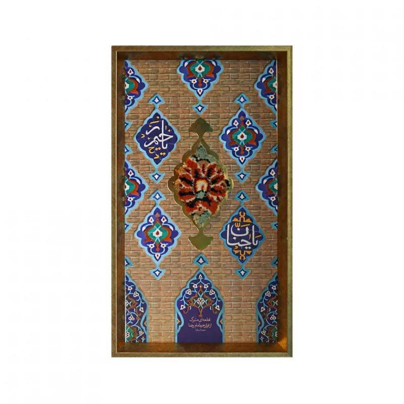 قاب فرش گلدسته حرم امام رضا (ع)، اثری هنری و معنوی است که با استفاده از فرش متبرک حرم مطهر امام رضا (ع) طراحی شده است. این قاب زیبا با الهام از گلدستههای باشکوه حرم رضوی، حس ارادت و عشق به امام هشتم (ع) را در دلها زنده میکند.