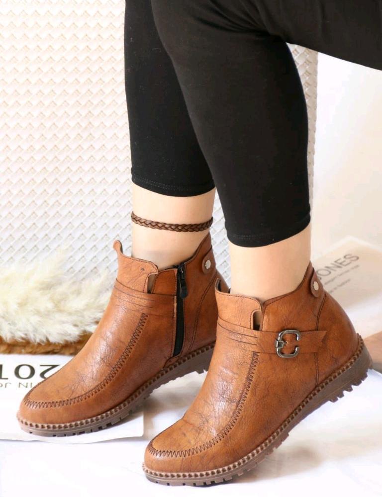نیم بوت زنانه مدل شمیم با رویه سوگو و زیره پیو پرفروش عسلی و مشکی