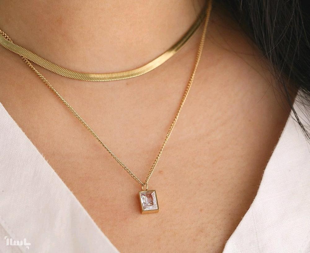 گردنبند زنانه دو لاین طرح نگین دار (ارسال رایگان) عبیرشاپ