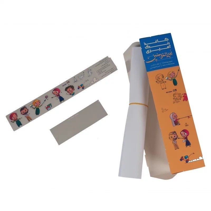بسته کاغذ رنگی امیر المومنین حاوی 2 کاغذ رنگ آمیزی با طرحهای متفاوت به ابعاد 100*34 سانتی متر با گرماژمناسب برای رنگ آمیزی و کار با مداد رنگی و مداد شمعی و آبرنگ سبک است و میتوان کاغذ های رنگ آمیزی را به دیوار نصب و یا روی زمین پهن کرد.همچنین 9 نگهدارنده در بسته موجود است که با اتصال 9 شخصیت مقوایی موجود در بسته میتوان نمایش های خلاقانه ای توسط کودکان و بزرگتر ها اجرا نمود.این محصول برای سرگرم نمودن کودکان همراه با انتقال مفاهیم دینی بسیار جذاب میباشد.