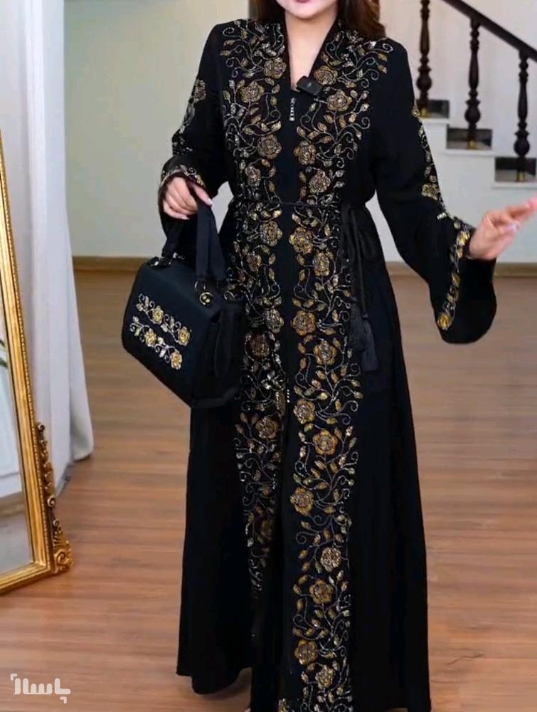مانتو مجلسی کرپ ژوژرت وارداتی مدل عبایی با کیف