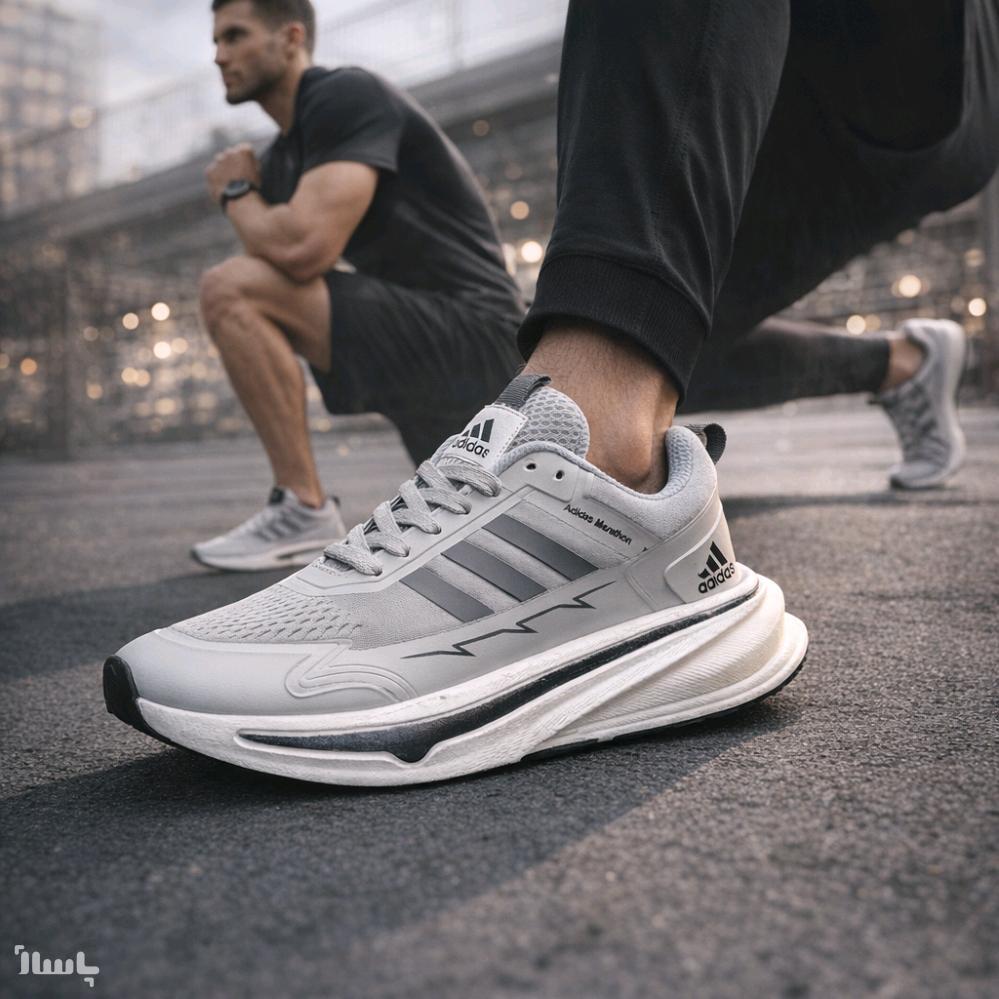 کتونی رانینگ مردانه آدیداس طوسی زیره بوست