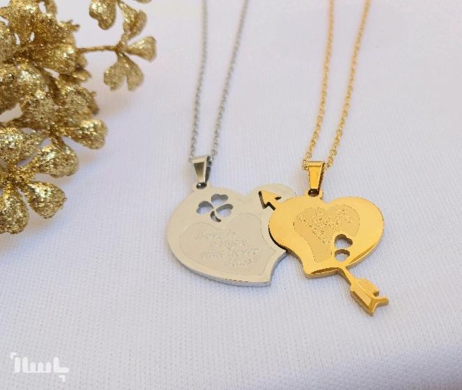 گردنبند استیل طلایی (دوستی)دو تکه مدل قلب