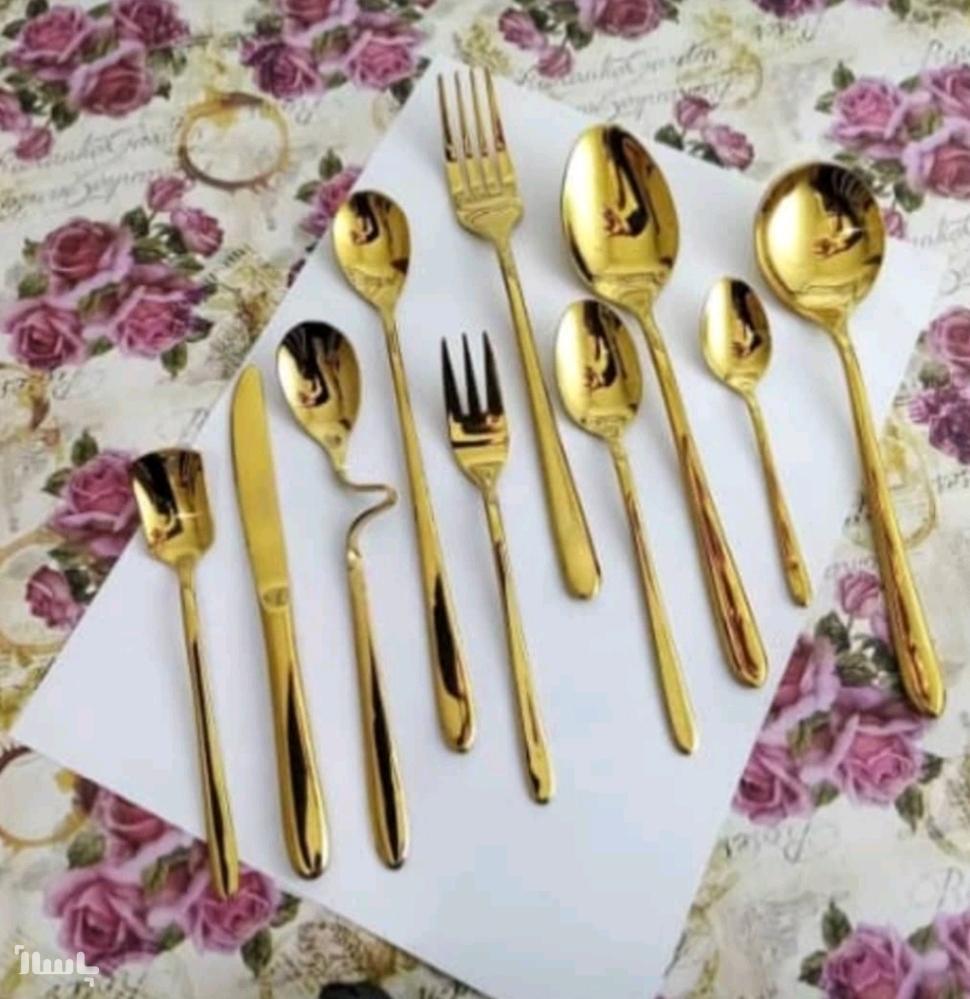 سرویس قاشق و چنگال طلایی 24 نفره 144 پارچه بی چمدان یونیک دنا
