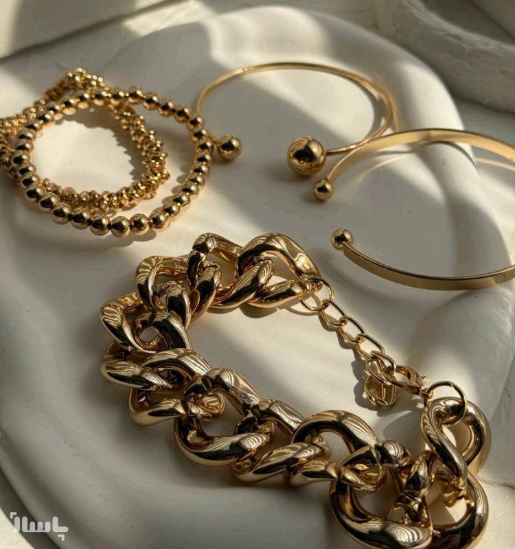 پک 5تایی دستبند بنگل طلایی رنگ ثابت