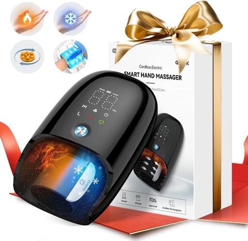 ماساژور برقی دست GOBOK FE-0161 با 6 حالت ماساژ، 6 سطح شدت، گرما در دو سطح، فن خنککننده و باتری 3000mAh؛ طراحی ارگونومیک برای کاهش درد آرتروز و سندرم تونل کارپال.