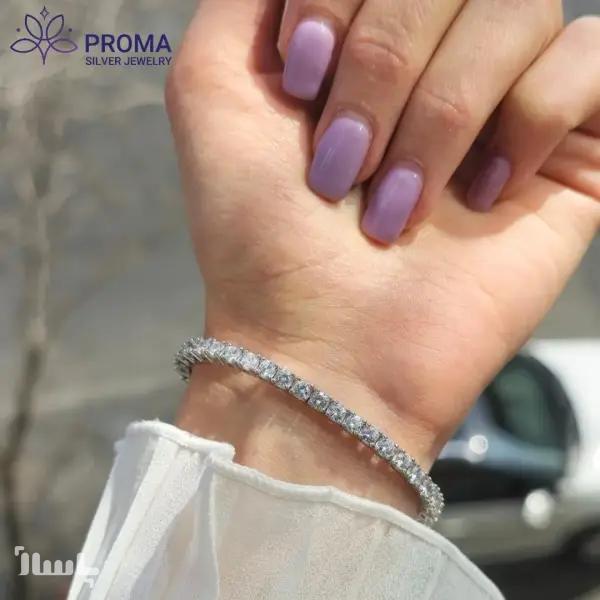دستبند نقره زنانه تنیسی نگین درخشان مدل PRM126