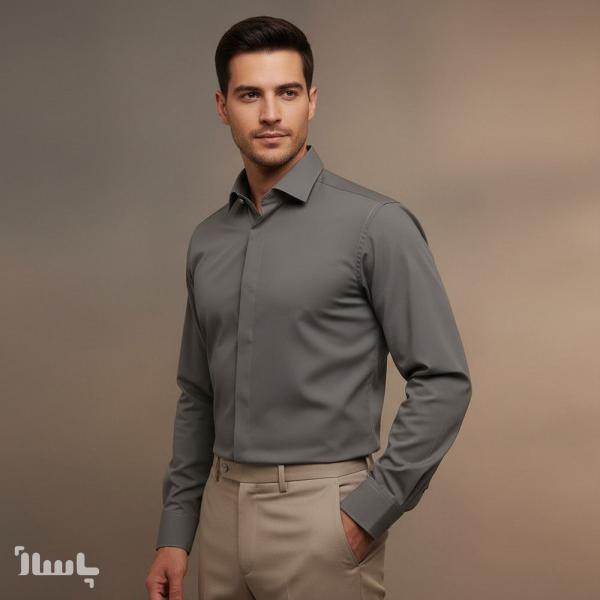 پیراهن مردانه ساده آستین بلند رنگ سبز زیتونی – استایل شیک و رسمی