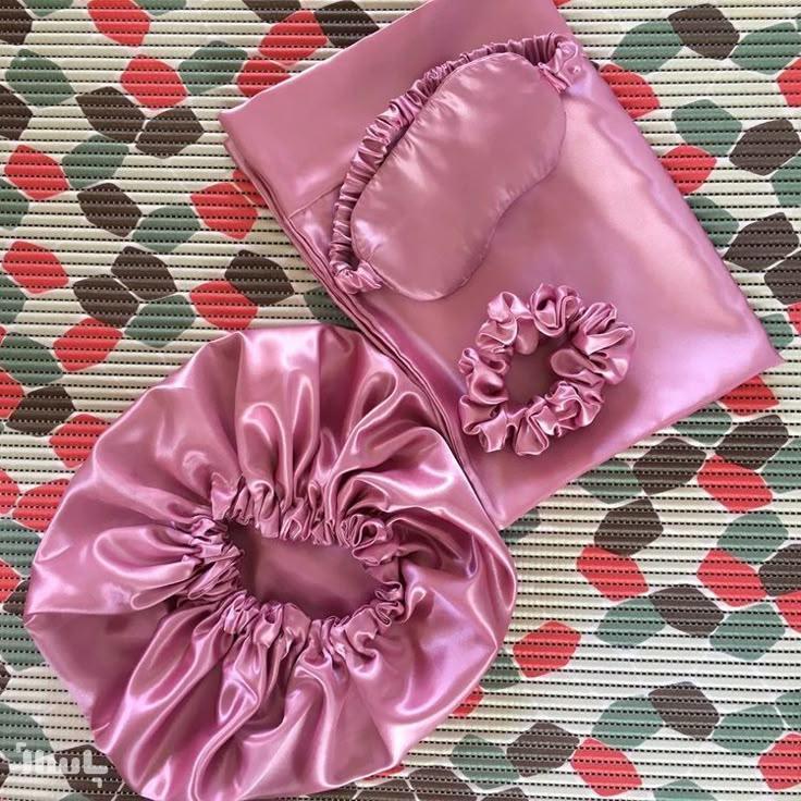 پک روبالشی کلاه خواب دورو چشمبند اسکرانچی ساتن ابریشمی