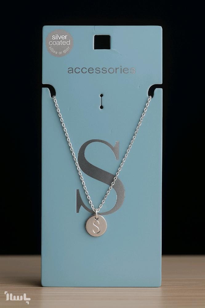 گردنبند نقره ای پلاک s برند accessories