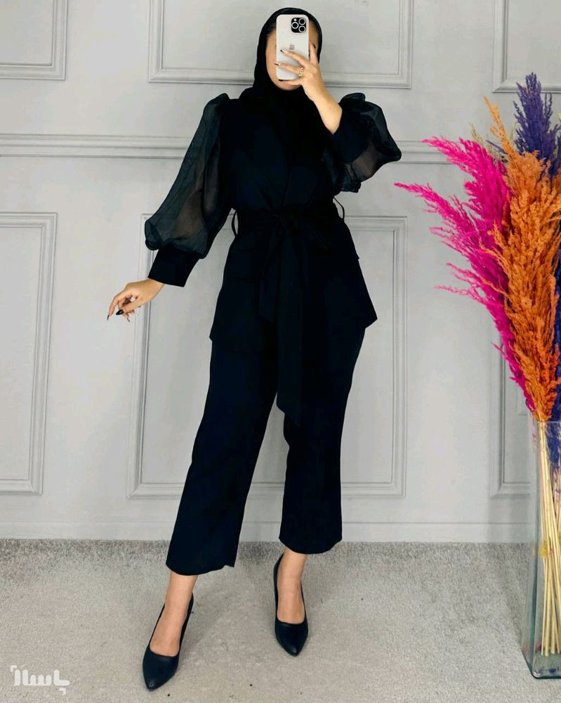 جنس : مازراتی درجه یک آستین تورارگانزو درجه یک سایز(1)36-38-40 سایز(2)42-44 سایز(3)46-48 قد شلوار 90. کمرشلوار کش دارد شلوارزیپ از بغل میخوره قد آستین. 55 قدبلیز 70