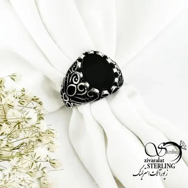 انگشتر نقره 925 عیار ترک با سنگ عقیق مشکی کد 20231