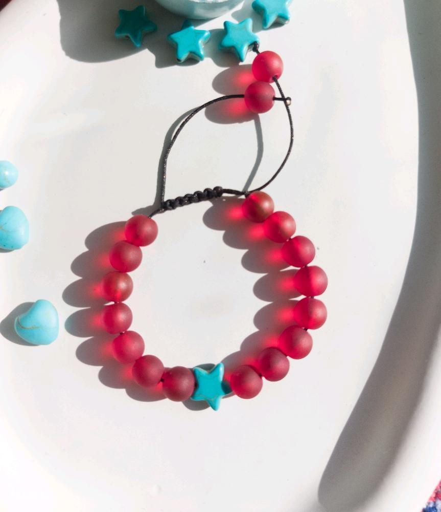 دستبند سنگ اونیکس قرمز شفاف و سنگ فیروزه