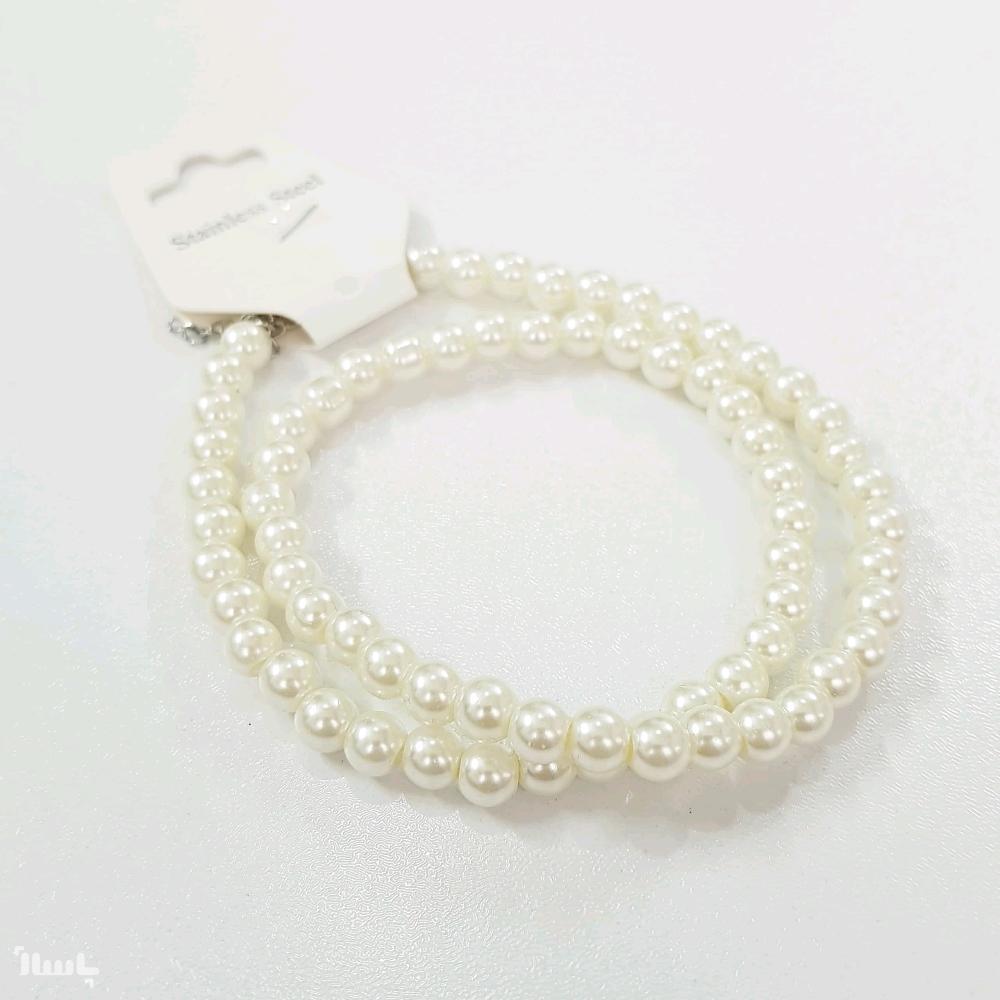 گلوبند تمام مروارید با زنجیر استیل ، بسیار زیبا و درخشان