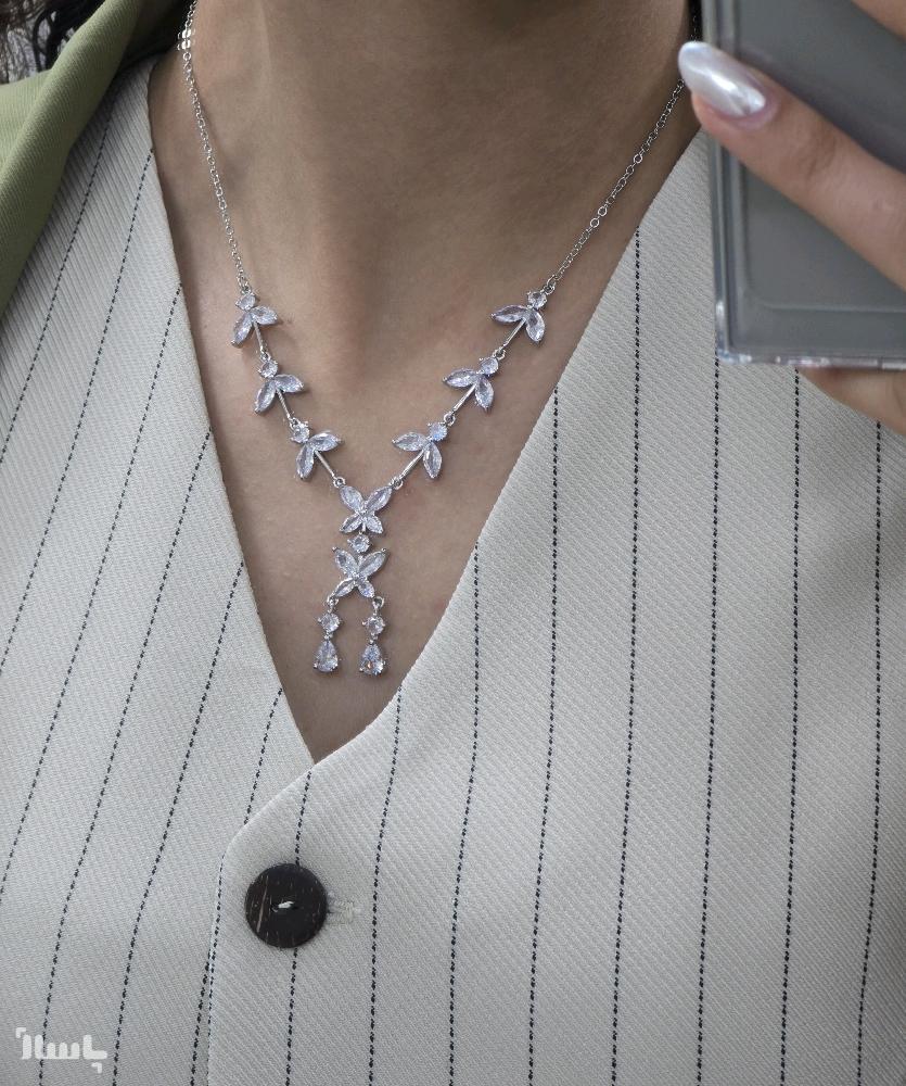 نیم ست زنانه استیل مدل جواهری آبکاری سفید نگینای اتمی