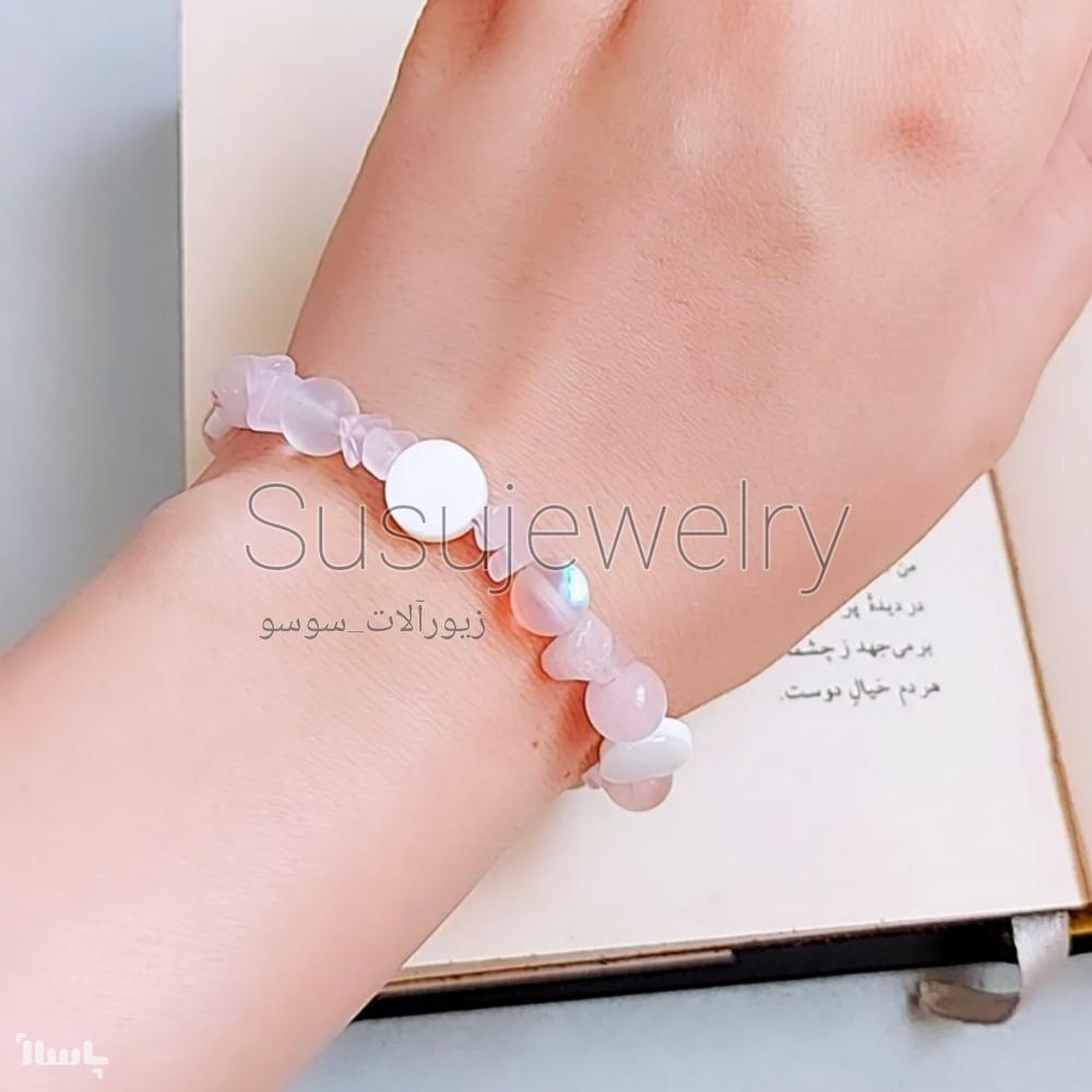 دستبند دخترانه سنگ کوارتز صورتی و صدف