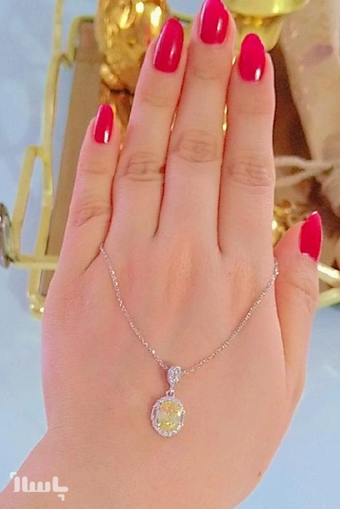 گردنبندنقره زنانه تک نگین نباتی با آبکاری طلا سفید بدون ریزش نگین