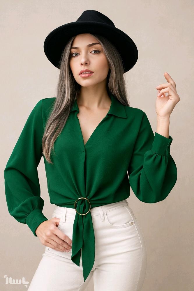 شومیز سبز دخترانه زنانه مجلسی گره ای