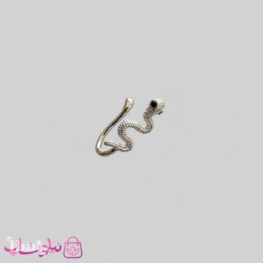 پیرسینگ فیک بینی یا گوش طرح مار نگیندار نقره ای کد 849